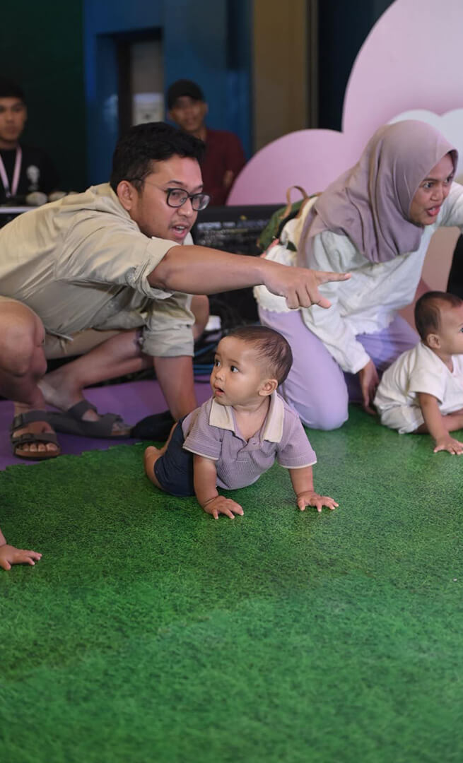 Salah satu acara yang paling dinanti adalah Baby Crawling Competition oleh Orami, yang berlangsung pada Sabtu, 5 Juli 2025. Area acara dipenuhi dengan tawa, semangat, dan dukungan dari moms dan dads yang mendampingi si kecil merangkak menuju garis akhir. Sebanyak 20 peserta cilik tampil sesuai kategori usia mereka. Ajang ini bukan hanya menyenangkan, tetapi juga memperkuat bonding antara orang tua dan anak dalam suasana yang hangat. Seluruh peserta dan pemenang pun mendapatkan hadiah-hadiah menarik, menjadikan pengalaman ini semakin berkesan untuk seluruh keluarga.