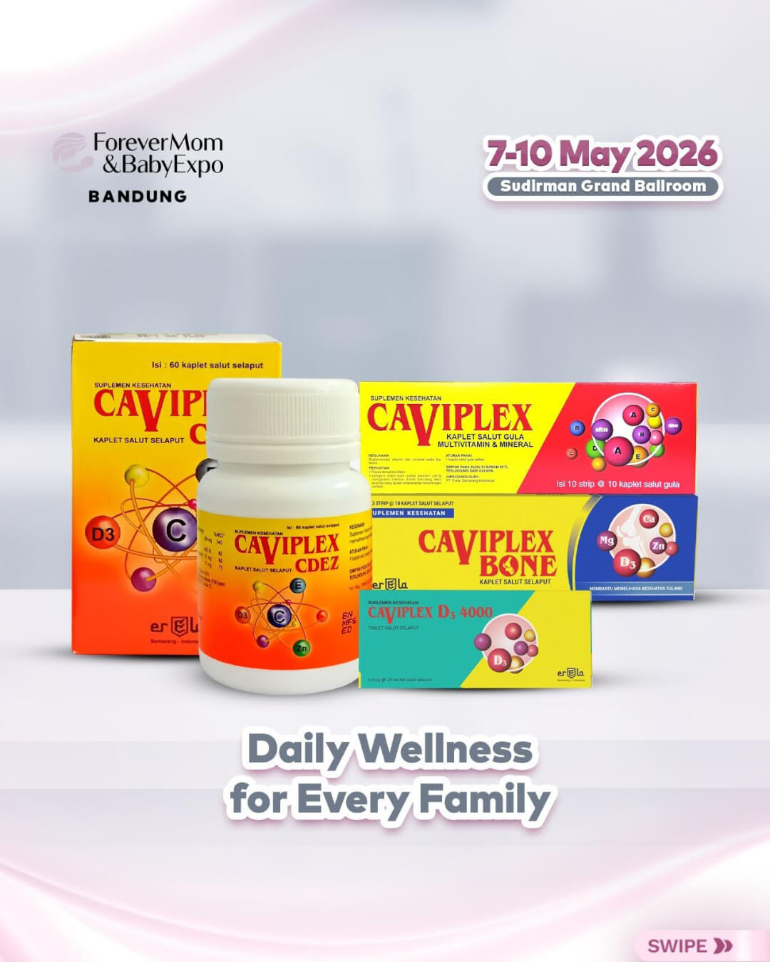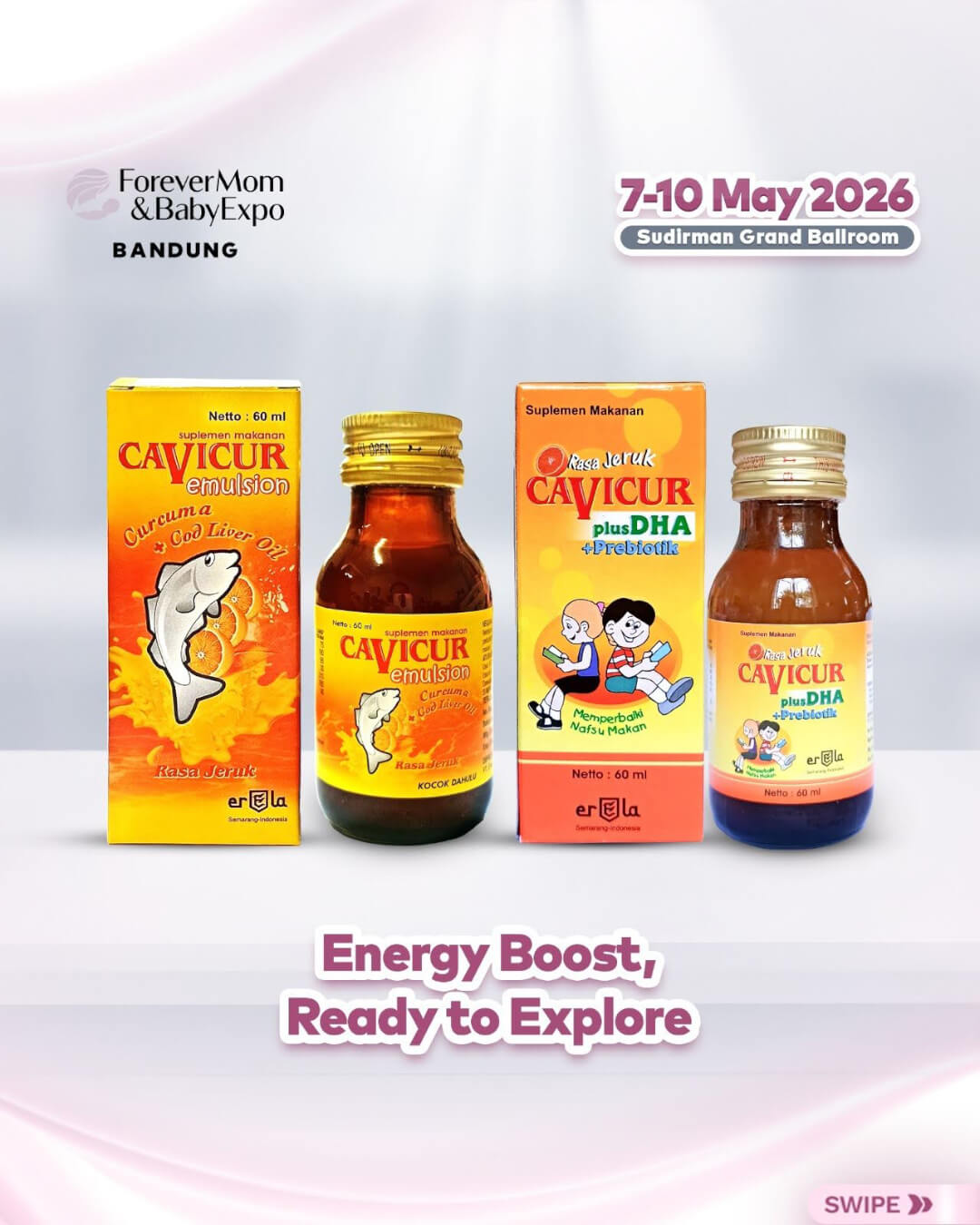 Yuk moms & dads, kunjungi booth Caviplex di BOOTH A-8B dan temukan langsung rangkaian produk unggulan yang bisa disesuaikan dengan kebutuhan harian. Moms & dads juga dapat mengenal lebih dekat manfaat setiap produk serta menemukan pilihan tepat untuk menjaga keluarga tetap sehat, aktif, dan penuh energi setiap hari.