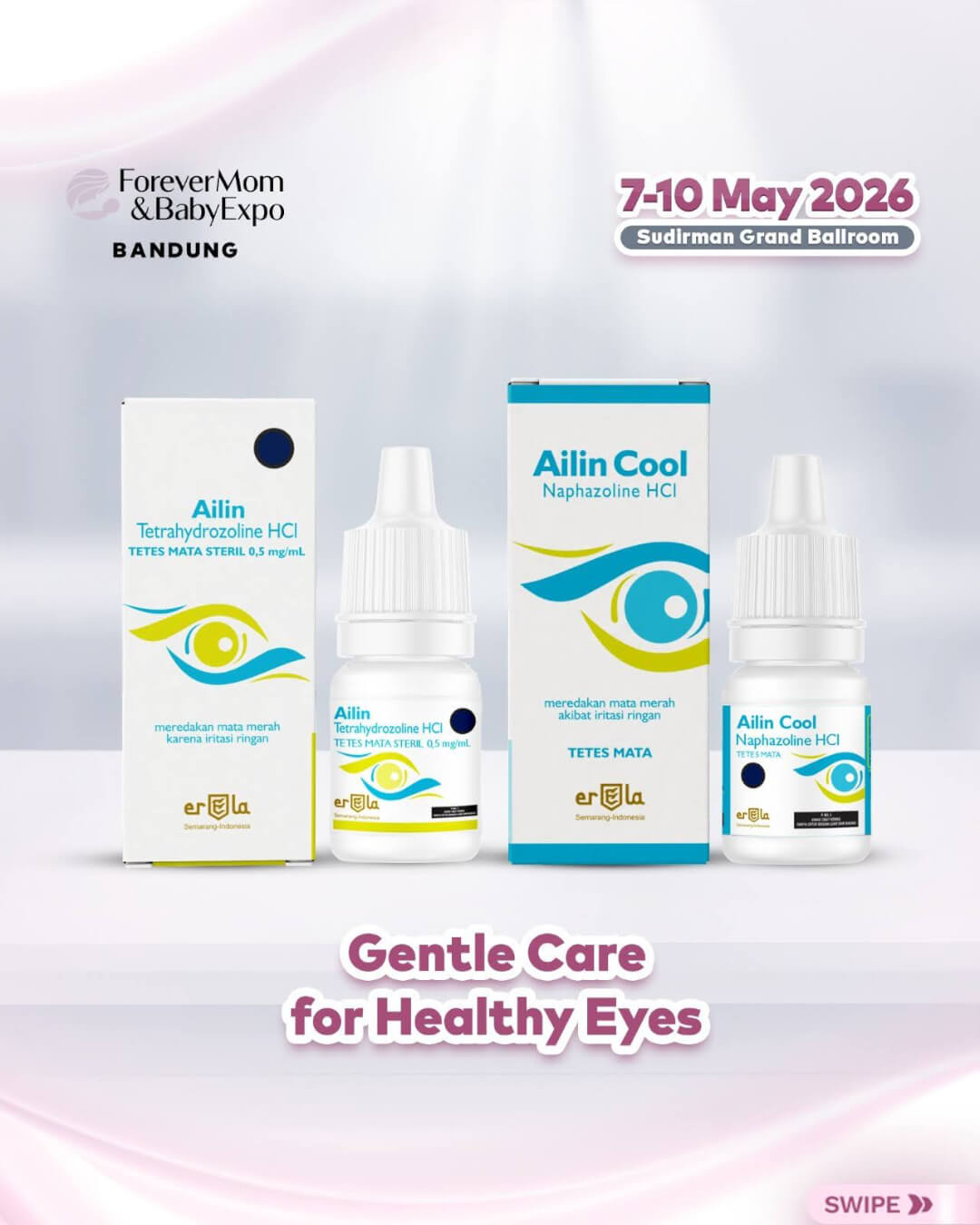 Selain itu, perhatian terhadap kesehatan juga hadir melalui rangkaian Ailin seperti Ailin TM, Ailin Flush, dan Ailin Cool yang memberikan solusi perawatan mata untuk membantu menyegarkan, menenangkan, dan melindungi mata dari berbagai aktivitas harian.