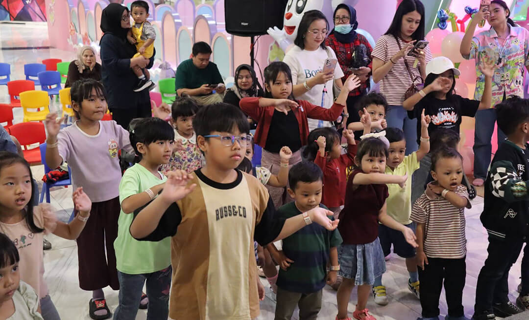 Beragam aktivitas interaktif membuat suasana semakin hidup. Dimulai dari fun games bersama Kumbo Bandung yang mengajak si kecil bermain sambil berkesempatan membawa pulang merchandise menarik. Keceriaan berlanjut saat badut ikonik Coco dari Cocoland hadir mengajak anak-anak bernyanyi dan menari bersama, menciptakan momen penuh tawa yang sulit dilupakan.